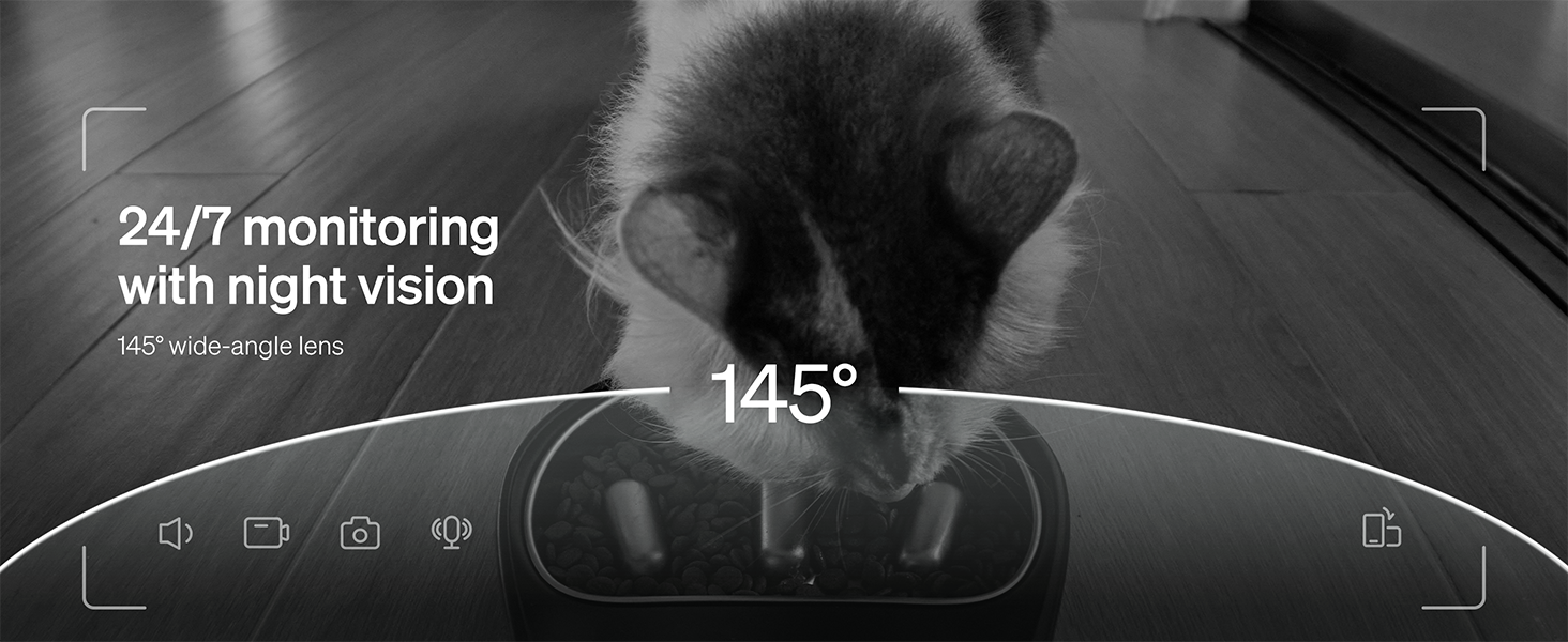 - Monitor meals with a built-in 1080p camera and a 145° wide-angle lens.
