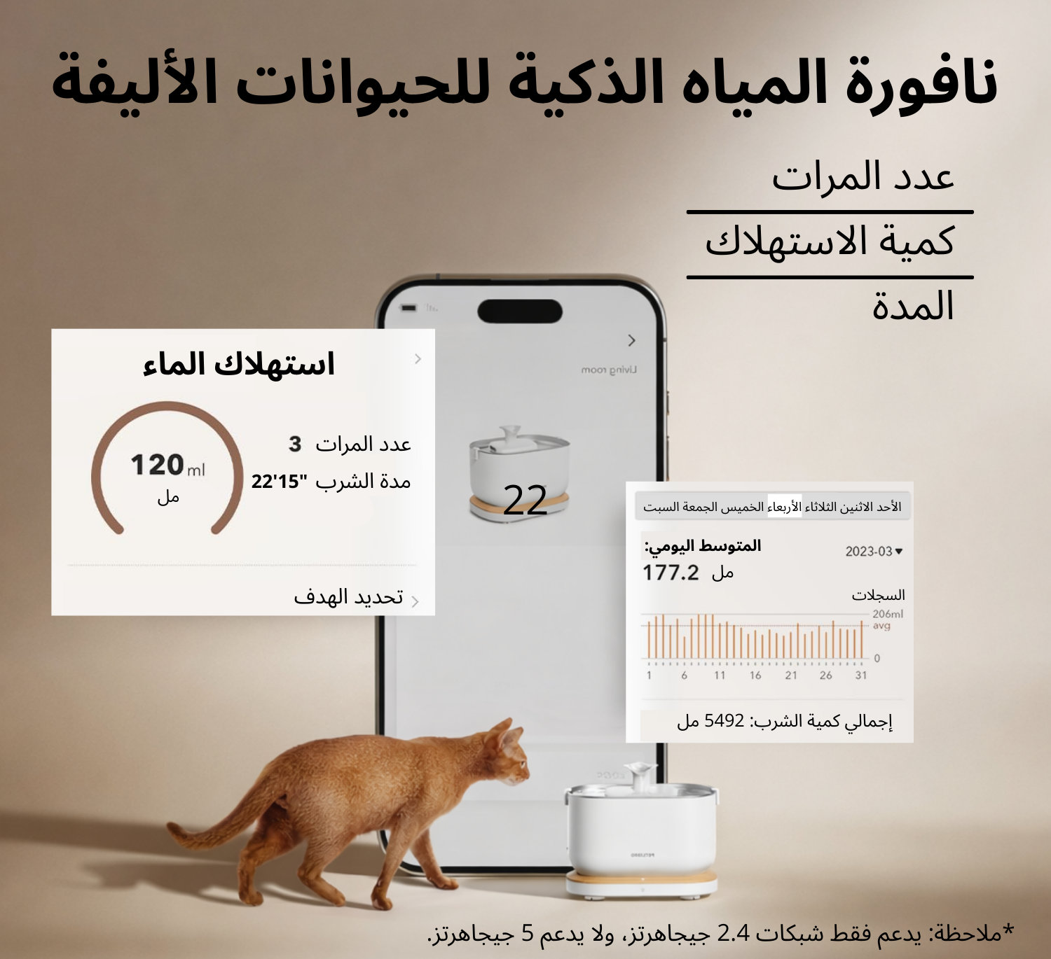 A smart pet water fountain that provides clean, fresh water whenever your pet is thirsty, while allowing you to easily monitor daily water intake through a mobile app—ensuring optimal hydration and better overall health.