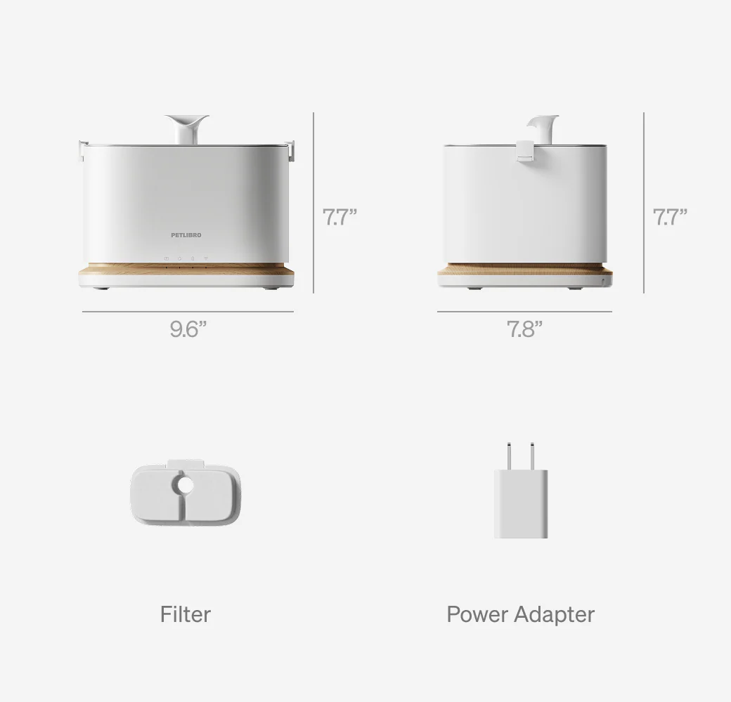 - Pump-free design and dishwasher-safe stainless steel water tray