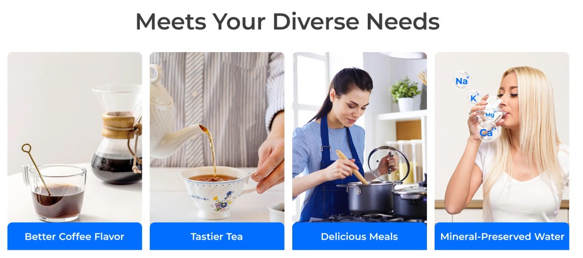 • Does not reduce TDS (essential minerals preserved)